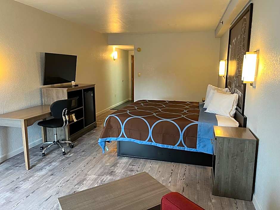 This room features a cable TV, microwave, and dining area. A small refrigerator and coffee-making facilities are also included.